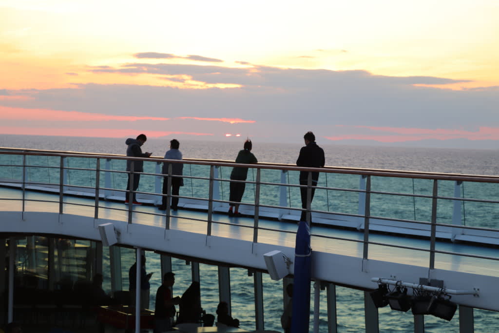 あれよあれよと無情に日は暮れていきます。今回は前回のコスタネオロマンチカに比べて充実したクルーズでした。(前回は台風で釜山に3日足止めになりました。)複数回目の乗船になると船内施設の場所もわかるので新しい発見は少ないですが安心感はあります。