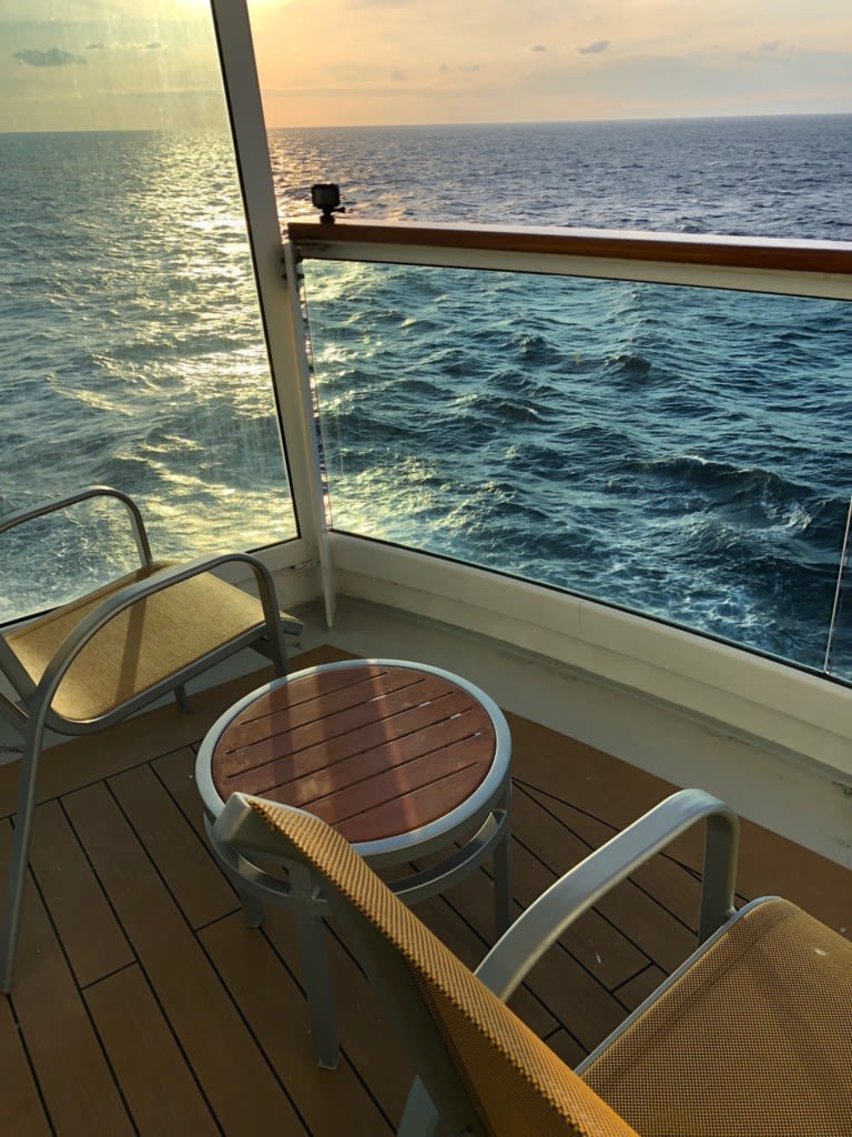 プールデッキあたりを散歩したりするのも贅沢な時間です。今日一日、食べる、飲む以外に何もしていません…。