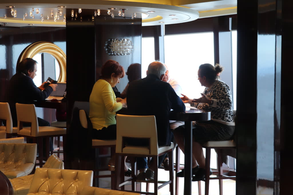 終日航海ですので船内には人が多く、午後は全体的にまったりな雰囲気。私たちは翌日下船ですが、神戸から乗船した方たちや外国人の方など2クルーズ目に入る方たちはまだ旅の途中です。誰と話すでもなく”人の気配を感じたい”場合はグランドバーピアッツァイタリアがいいかもしれません。