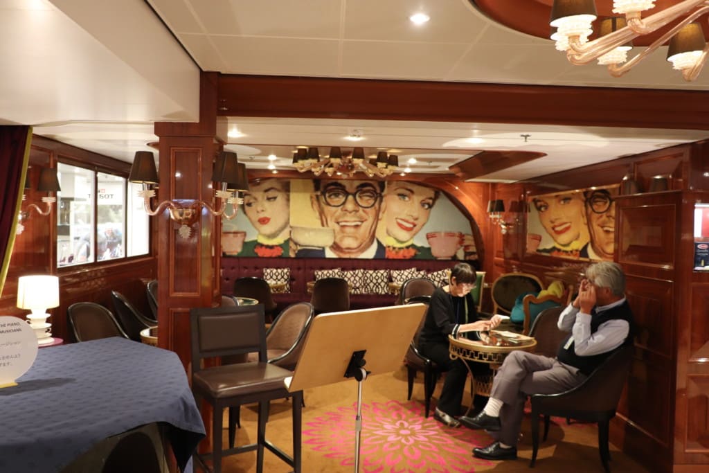 チョコレートバーでは本や新聞を読んで静かにくつろいでいる方が多かったです。一番奥のソファがゆったりしていて私的に船内で一番落ち着ける座面でした。
