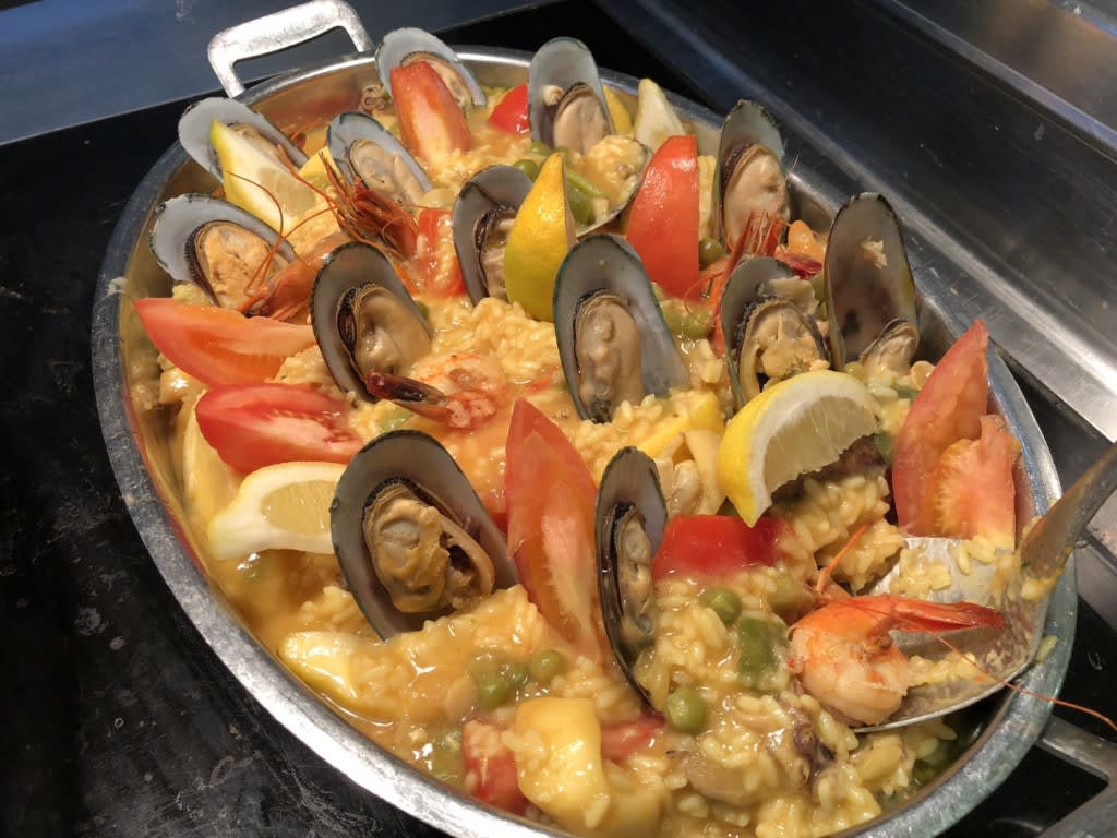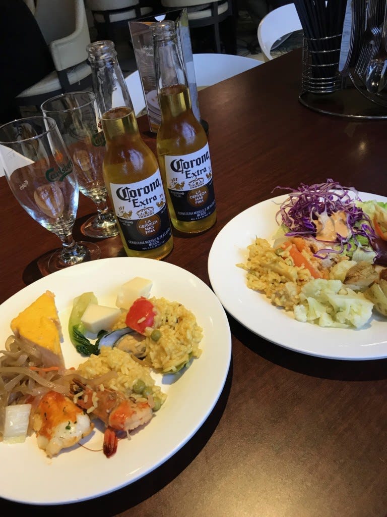 パエリアを中心に後はそれぞれこのクルーズで気に入ったお料理を盛り、コロナで乾杯。ほとんどの人が最後の夜をラウンジやショーで楽しんでいる時間帯だったのでほとんど人がいない静かなラストディナーでした。