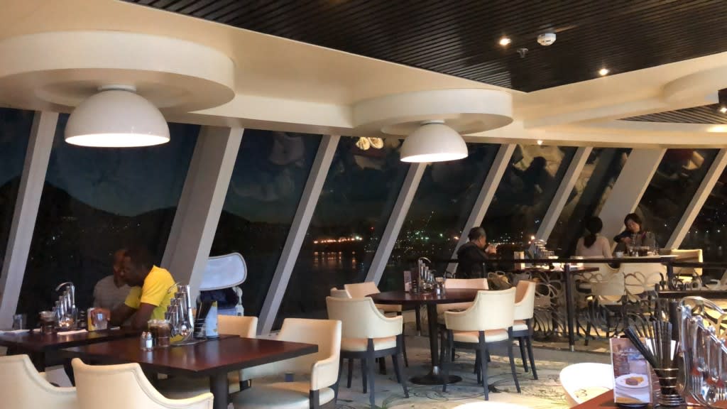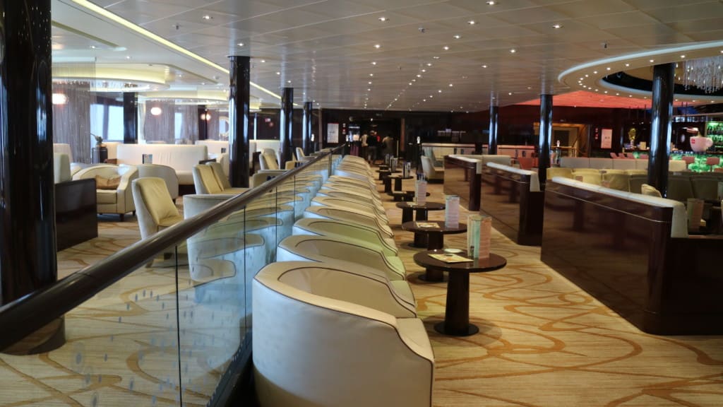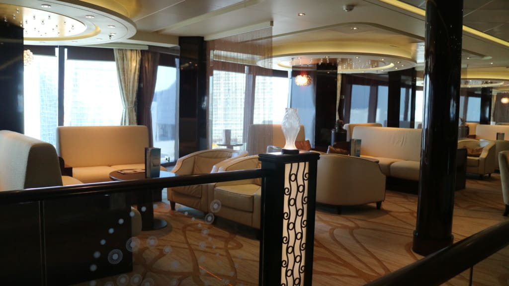 船の中心的ラウンジにも全く人がいない時があります。窓際席が半個室の状態になるので昼間は人気席となっていました。私たちもよく利用しましたが飲み物をオーダーする時にはなかなか気がついてもらえないのがやや難点でした。