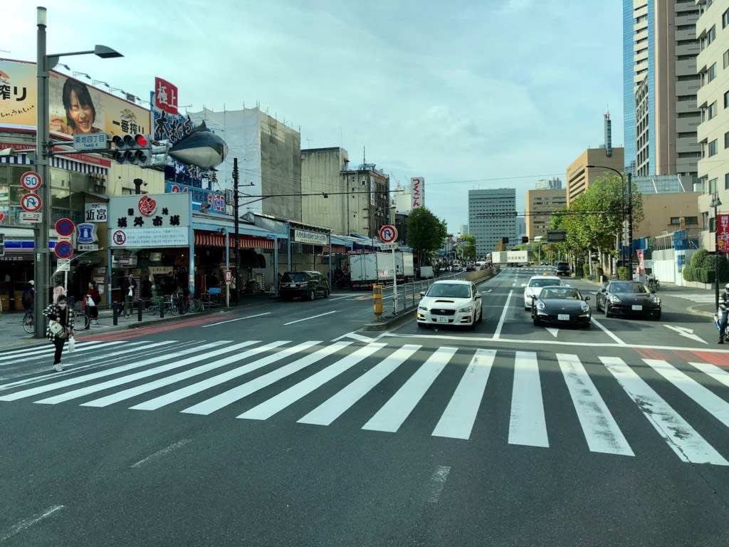 日曜の朝の築地場外市場付近。豊洲市場に移転していたため場外付近も人がまばらでした。バスに乗っていても体は何となく「揺れている」クルーズ旅行あるあるを感じながら有楽町で下車し家路に着きました。