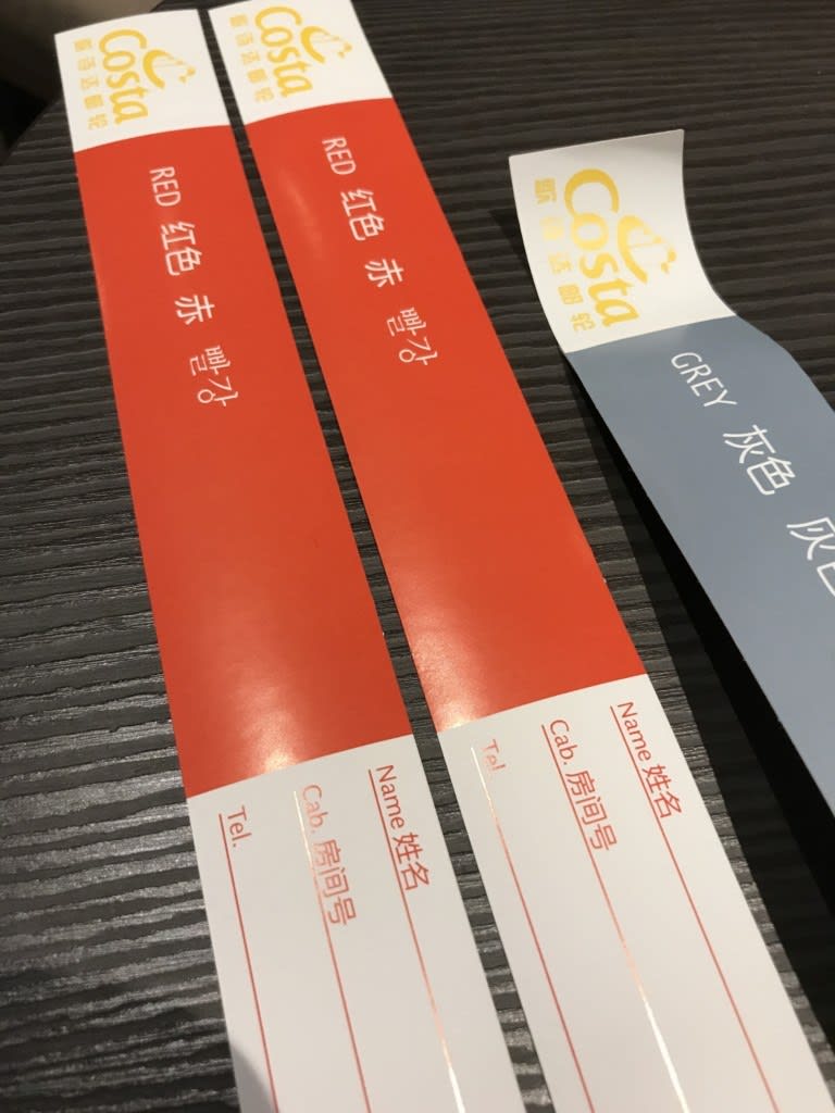↑2017年乗船時のコスタネオロマンチカの荷物タグ。何の予告もなしに灰色から赤色に変更になり焦りました。