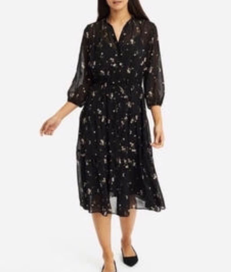 この時着ているワンピースは、UNIQLOの今期発売されている黒地×小花柄のシフォンワンピース(2,990円)です。