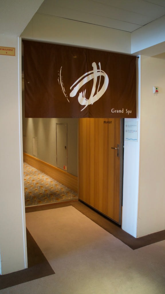 飛鳥IIの展望大浴場『グランドスパ』は、6:00〜12:00、13:00〜25:00の間にオープンしており乗船中何度利用しても無料!グランドスパのすごいところは、シャワーの湯量が我が家より多いこと!