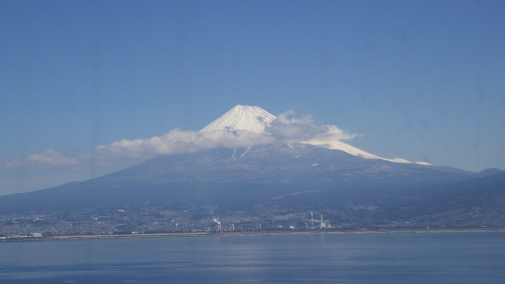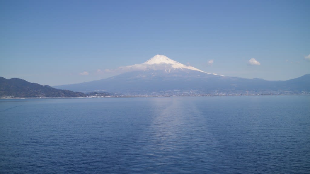 晴天になってよかった!富士山がはっきりそして大きく見えます。このクルーズの景色の山場です!