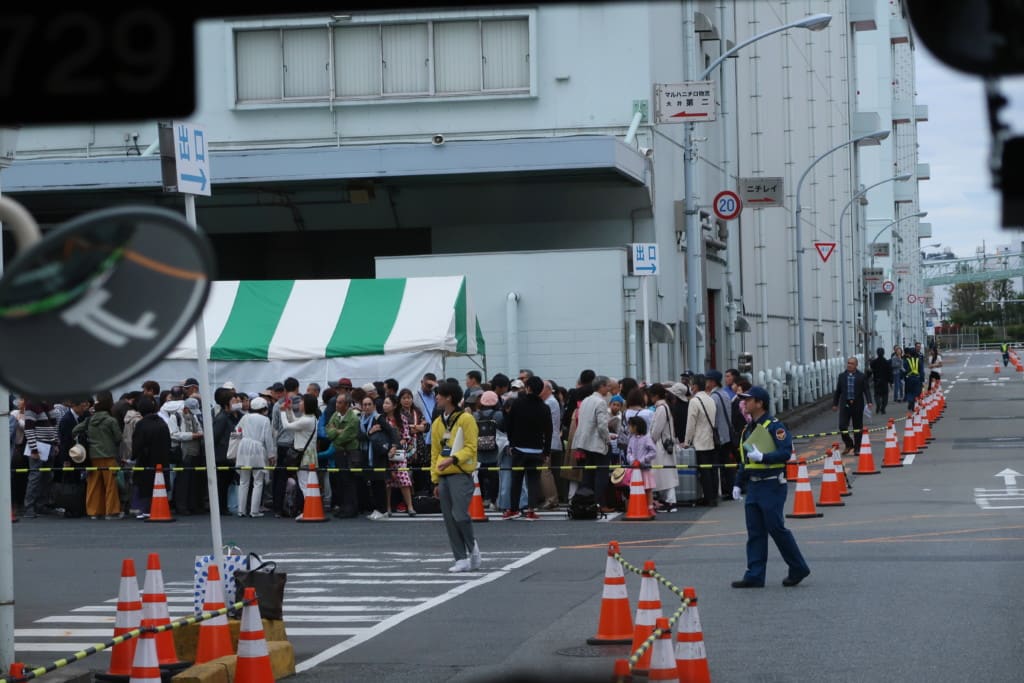 手続き上早めに大井埠頭に到着してたであろうスィート客室の方は実に2時間以上は立って待っていたことになります。