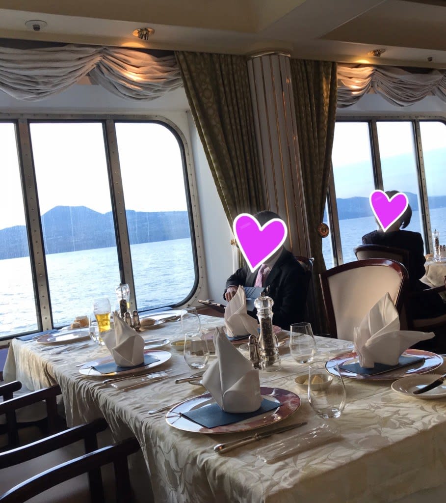 1stシーティングの食事開始時は窓の外の美しい夕焼けの特典付き!ダイニングレストランの扉が開く前から窓際お席が狙われています。