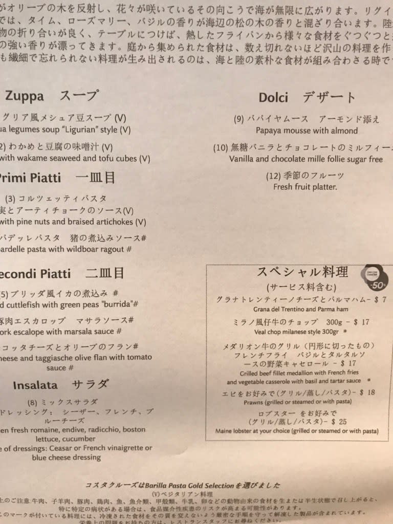 パスタ類が想像以上に味がないのはここのレストランだけではなく、この船全体で供されるパスタがそうでした。