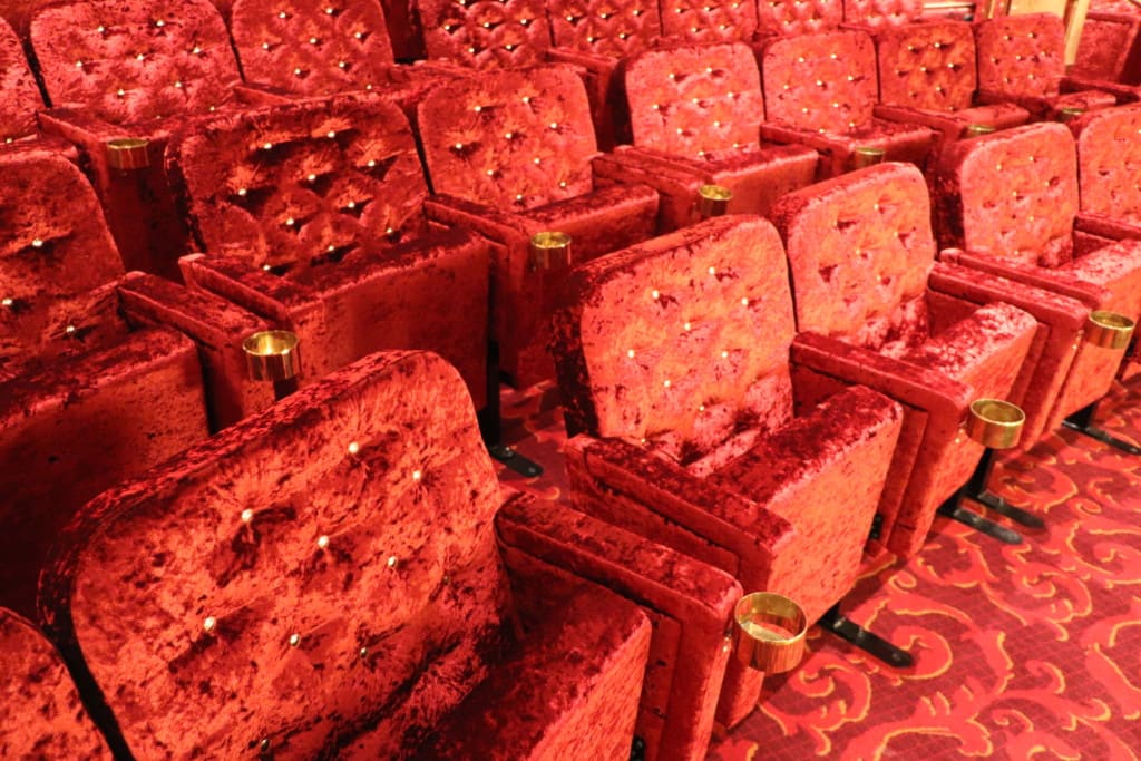 コスタベネチアのデッキ4,デッキ5の船首にあるシアター『テアトロロッソ』。収容人数は927名、総面積1,134㎡。ステージを中心にぐるりと客席が囲むそう大きくはないシアターなのでショーの臨場感は感じられます。