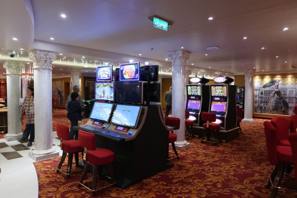 デッキ4中央あたりから後方にかけて、広いカジノがありました。マシンと同じくらいテーブルゲーム台がありこの規模クラスのクルーズ船にしてはカジノ面積「広め」な印象でした。