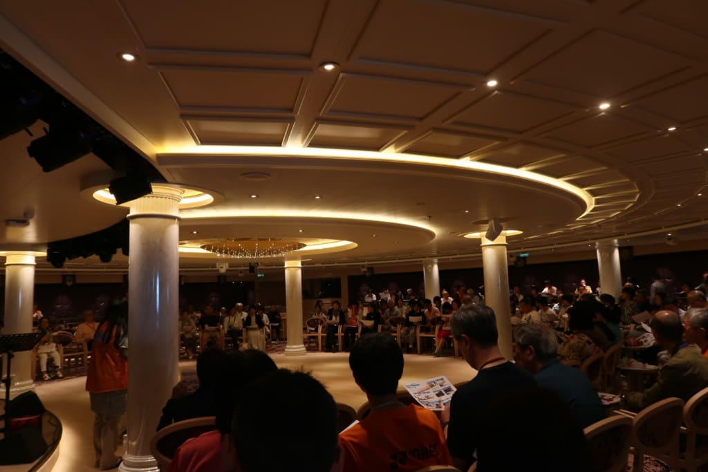 昼間はJTB主催の寄港地レクチャー、船の講座などが開催されていて満席、立ち見状態でした。