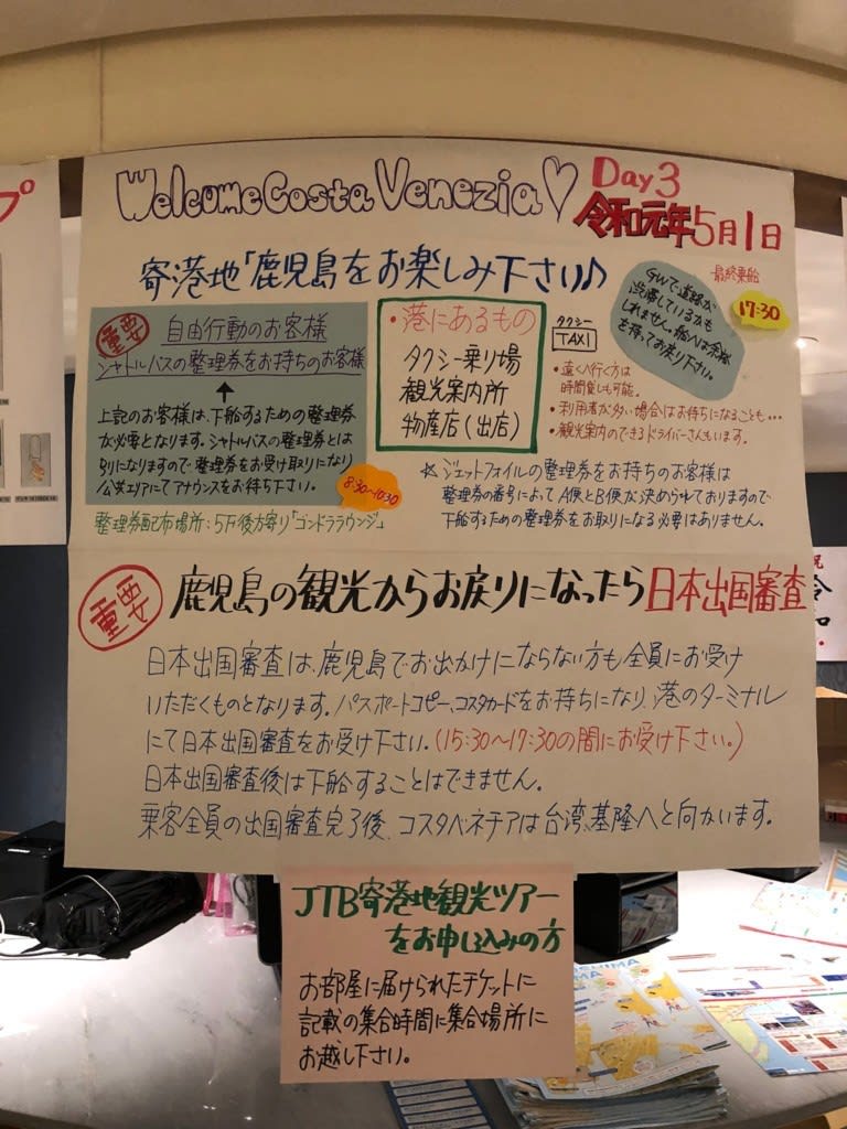 2019コスタベネチア乗船記(14):3日目鹿児島港|下船のための整理券発布!