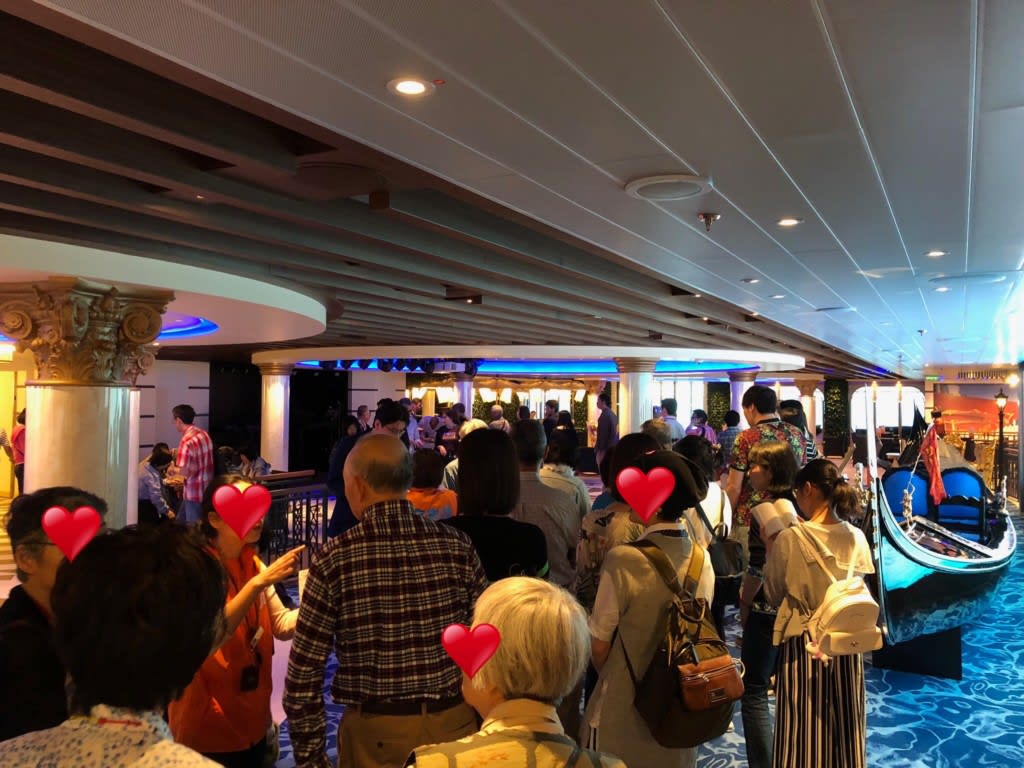 JTBオプショナルルアーに参加する人は、指定の船内集合場所に集まってからの下船のようでしたが…見ていると一向に下船が始まらない様子。
