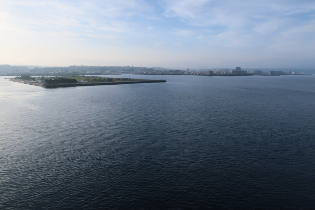 定刻通りに鹿児島港を離れ、小さくなっていく鹿児島港マリンポート。またいつか!