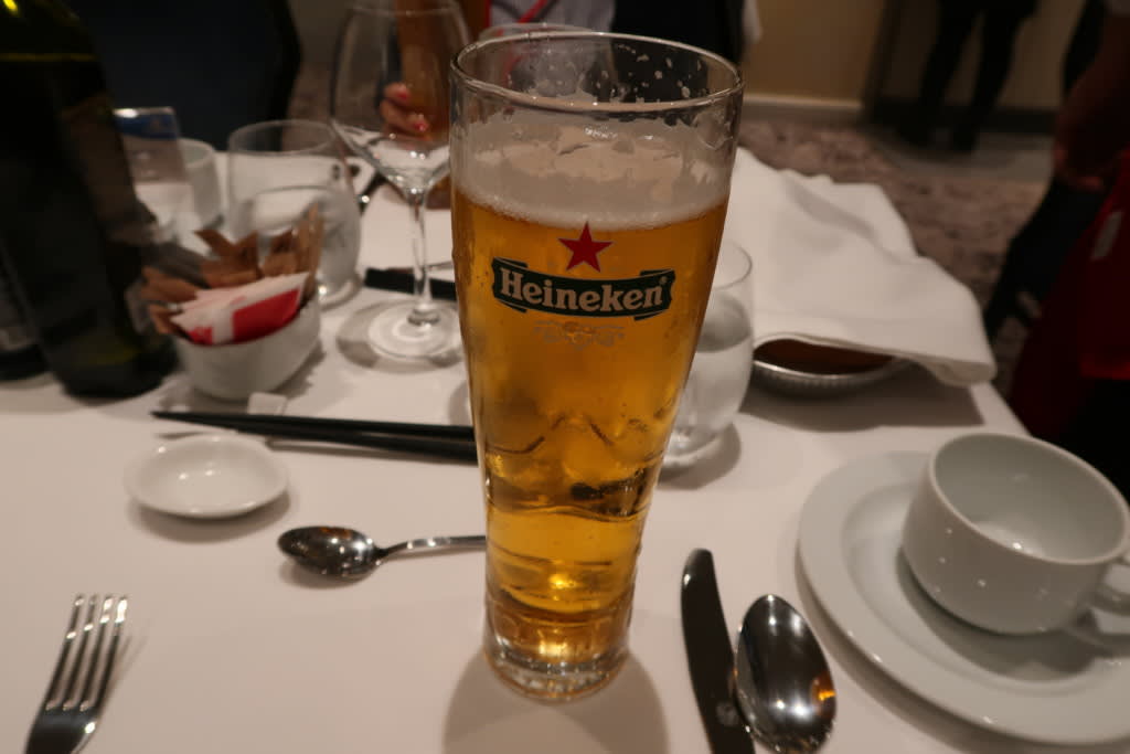 飲み物担当クルーも注文取りが早いんですが、持ってくるのがものすごく遅く、ビールの命、泡がなくなっているんですぅ〜。緩くなってるしね、グラスに注いでから相当時間が経っていますよ!