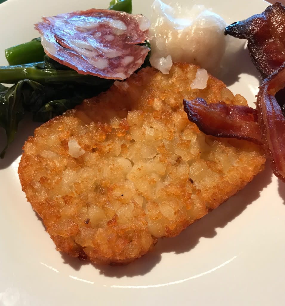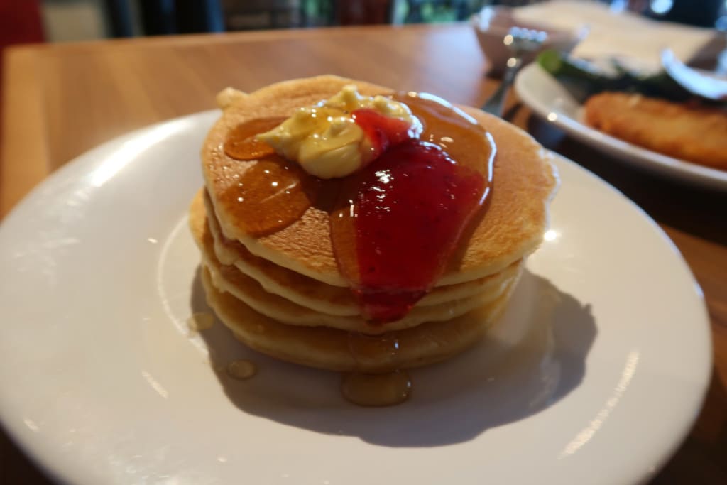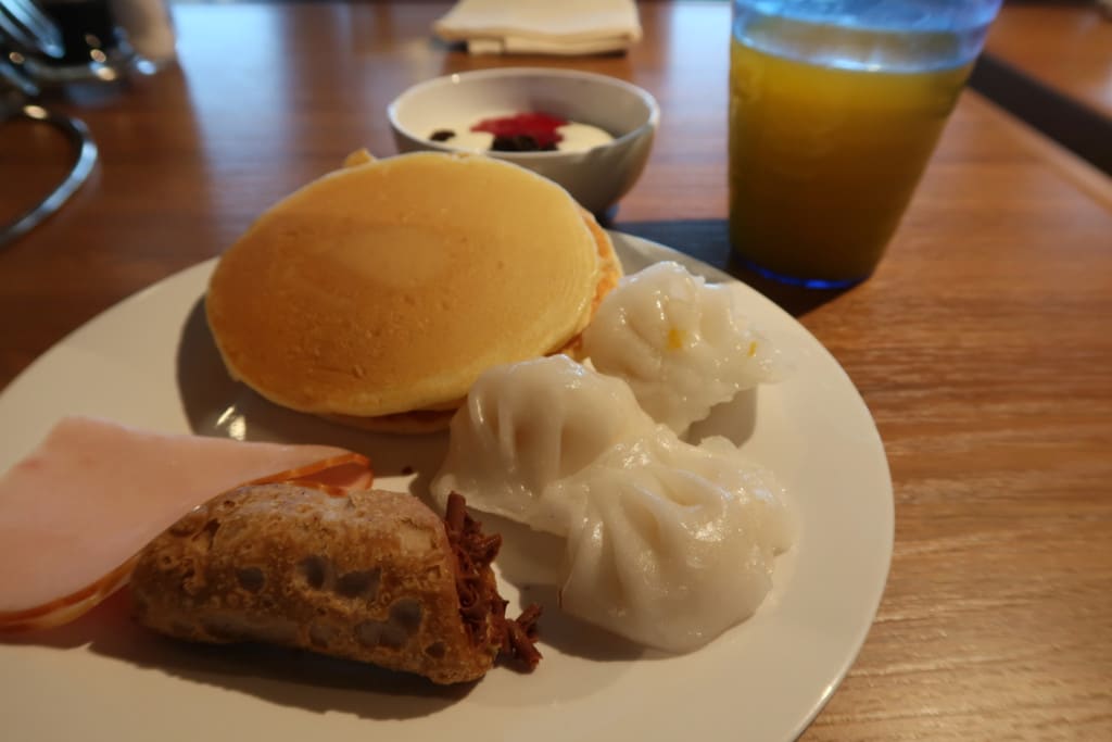 このクルーズ中で初めてお目にかかったパンケーキもありました!残念ながら冷えていた…。気を取り直して(?)重ねてみると『映え』たのか、何人かの人に「パンケーキ、どこにありました?」と声をかけられました!