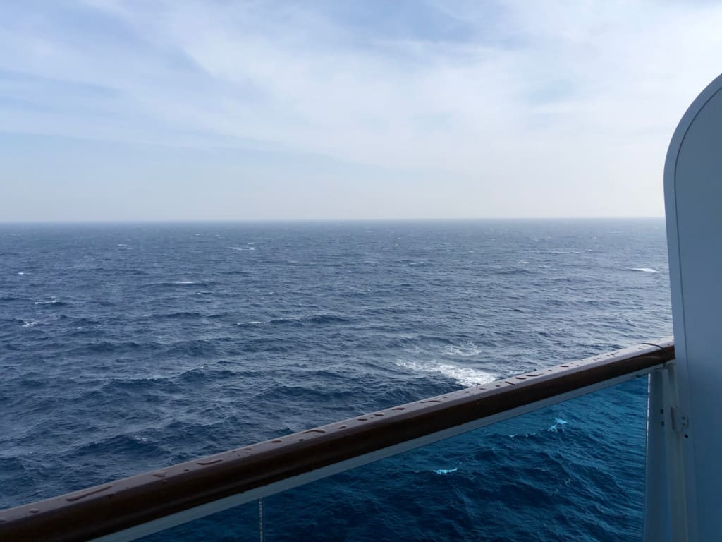 コスタベネチアでの最初の寄港地、鹿児島を後にした翌日4日目は終日航海日でした。この後船は一路、台湾・基隆を目指します。4日目は天候は曇り時々薄い晴れでしたが、相変わらず船はやや揺れでした。