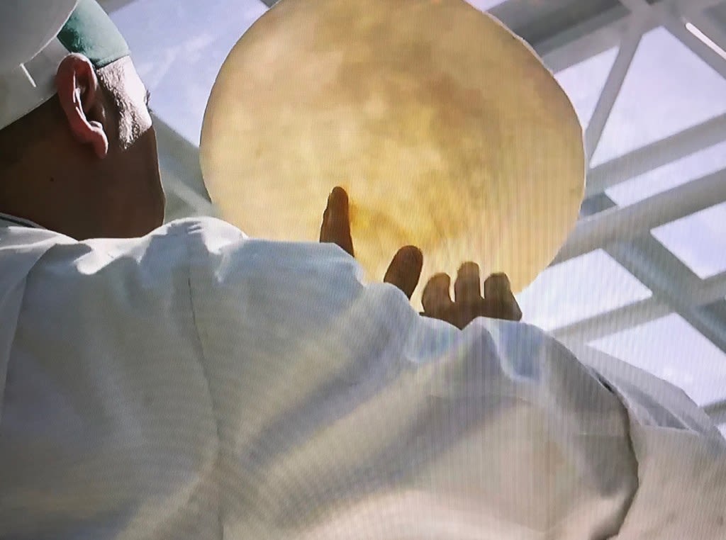 ピザ生地を伸ばすパフォーマンスがしっかり見れます!こちらは具材たっぷり、美味しそう。美味しいピザは有料で、ということでしょう。