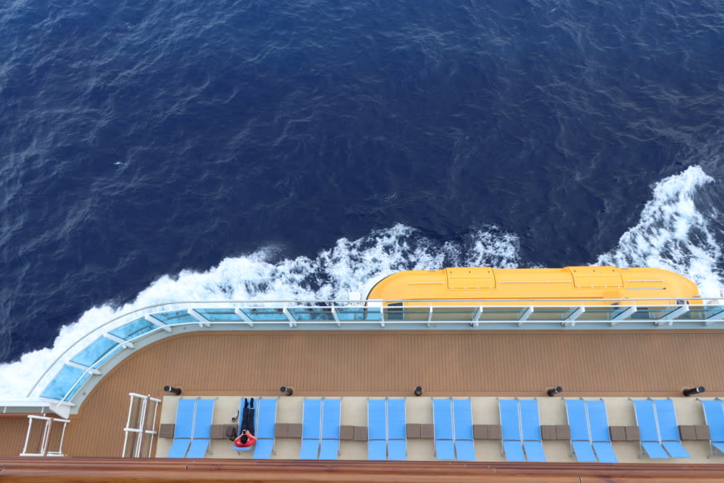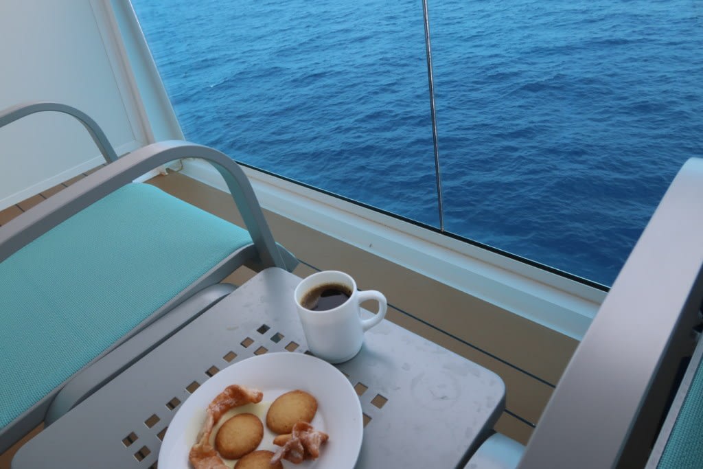 風がなければキャビンのバルコニーが静かでのんびり、最高です。