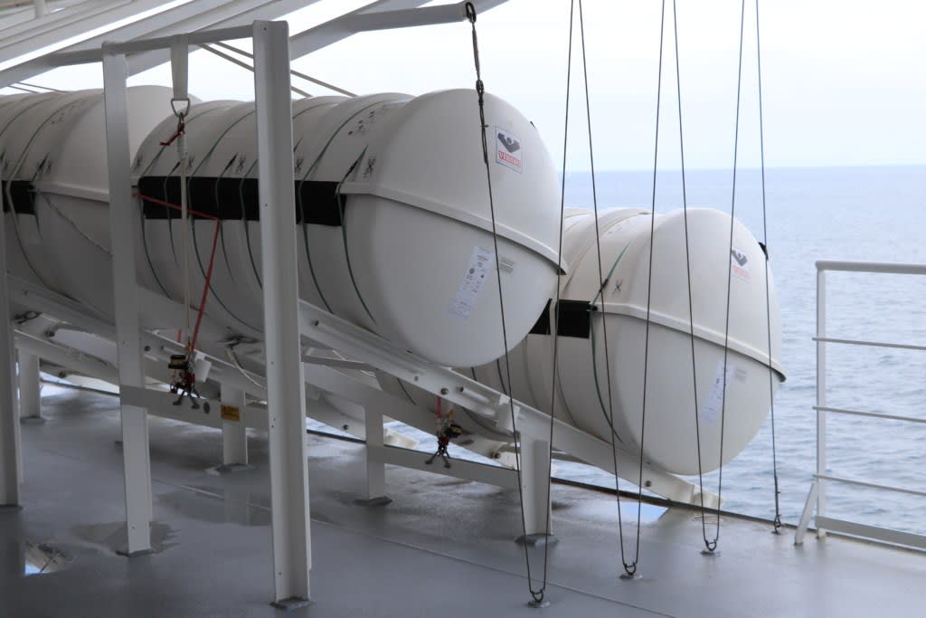 救命ボート、救命いかだ共に積まれているものは、水・食料・ライフジャケット・釣り道具とどの船も同じものが搭載されているそうです。