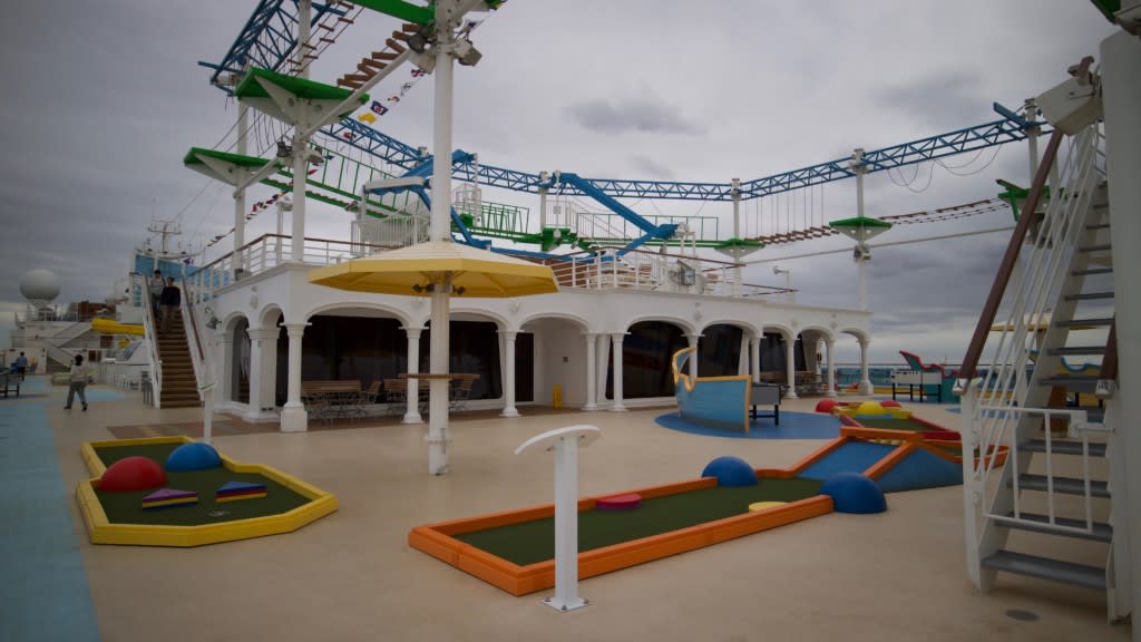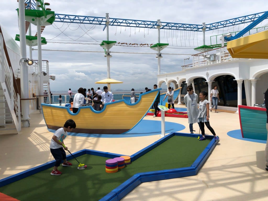 デッキ11にある子供向けの施設、スクォッククラブからデッキ12に出たところにミニゴルフのグリーンと遊具施設がありました。
