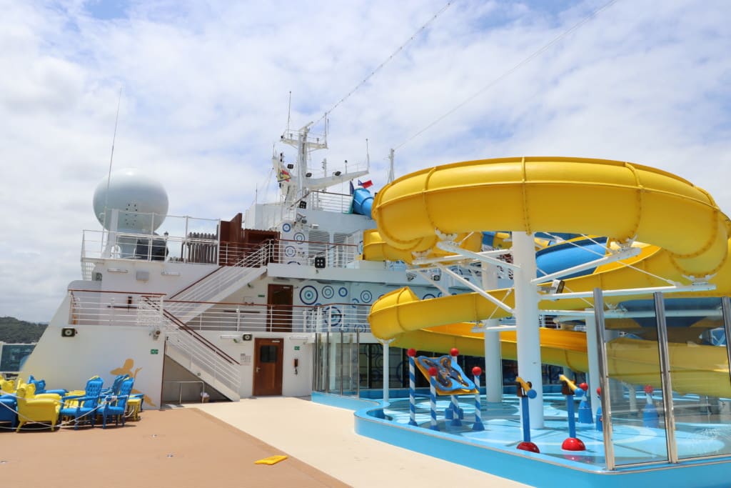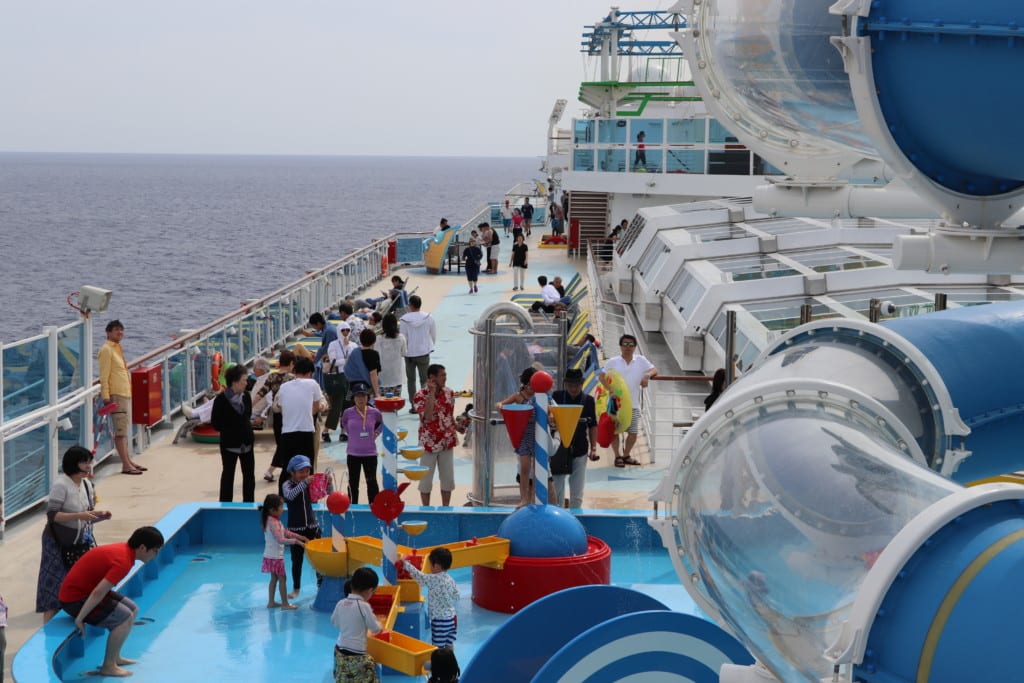 クルーズ中天候が悪かったり、揺れたりしたので後半オープンしていたラグーナウォーターパーク。スライダー自体はそんなに長いものではありませんでしたが、デッキ15,16から滑り落ちるウォータースライダーは大人気でした。