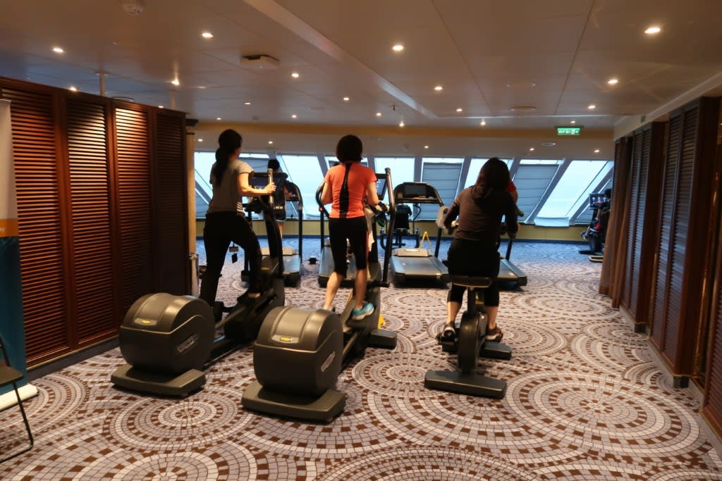 最新のフィットネスマシンが揃うデッキ12のフィットネスジムはクルーズ中終始混雑していました。マシンが全て新しいのは新造船ならでは!