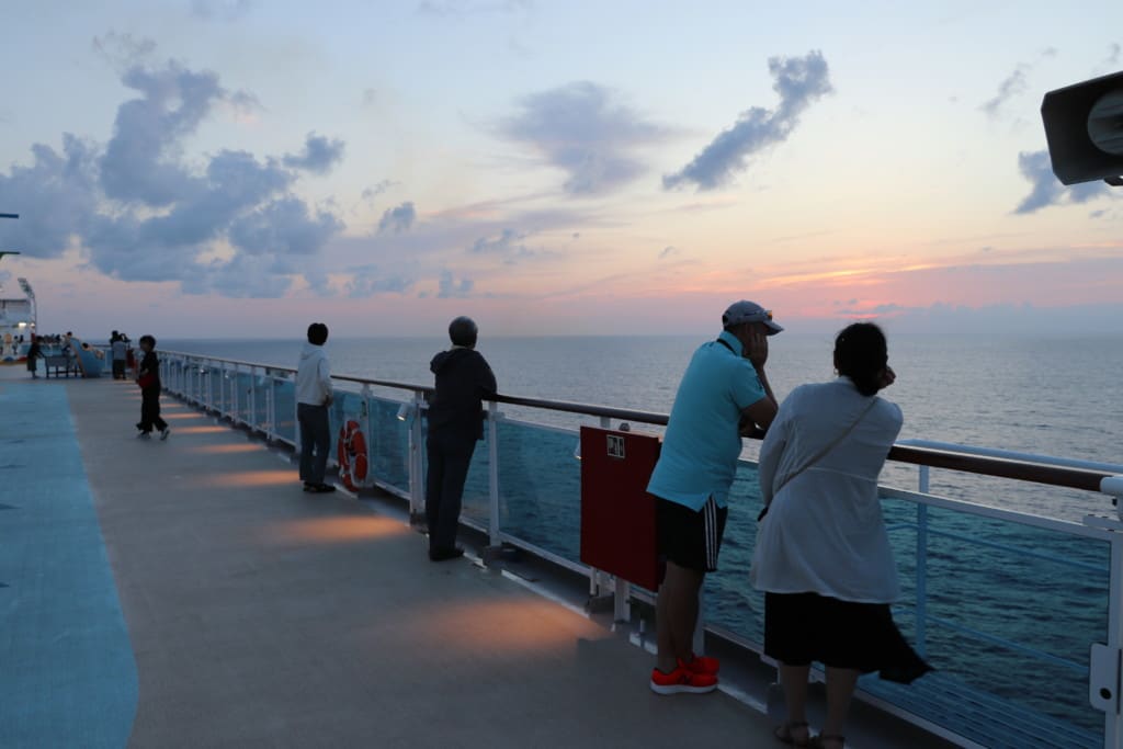 昼夜問わず船からの海と空を眺めるベストポイントのデッキでした。