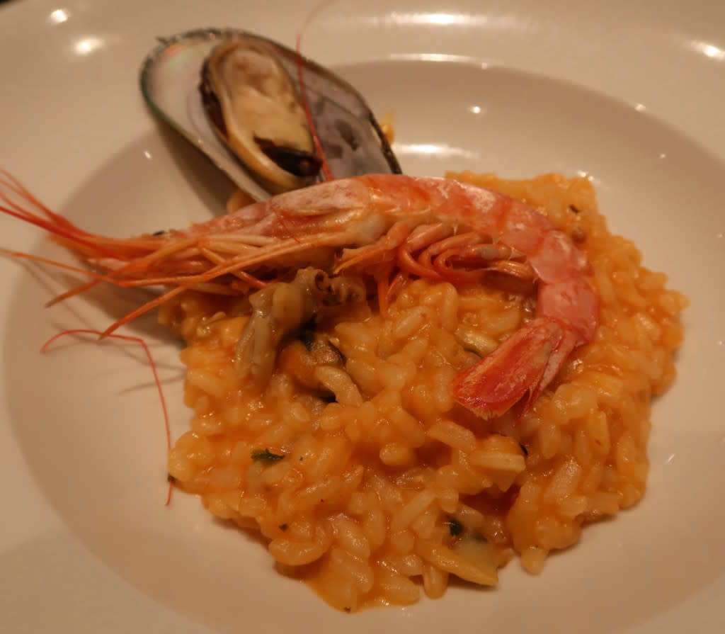 この日のディナーでイチオシだったのはこのシーフードリゾット!ねっとり感と量がいい感じ。エビの香りも立っていました。