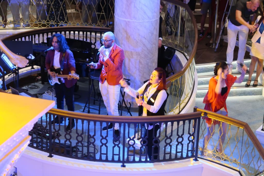 3層吹き抜けのピアッツァ ・サンマルコにはかなりの人が集っていました。生歌&生演奏に合わせてラストダンス!