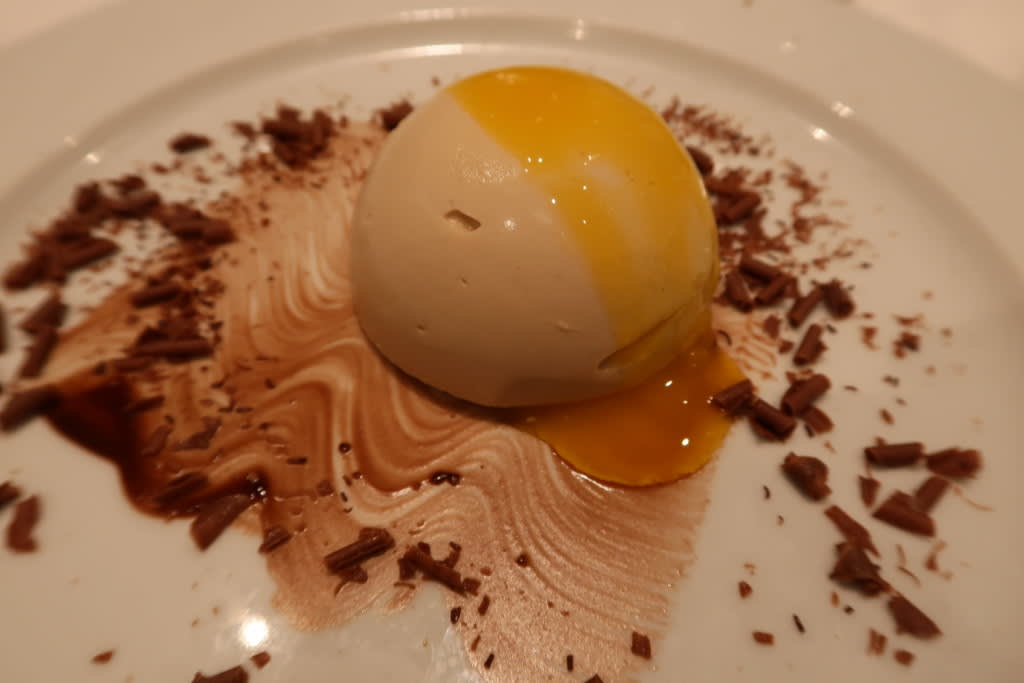夫のデザートはフローズンモカチーノ オレンジソース添え。