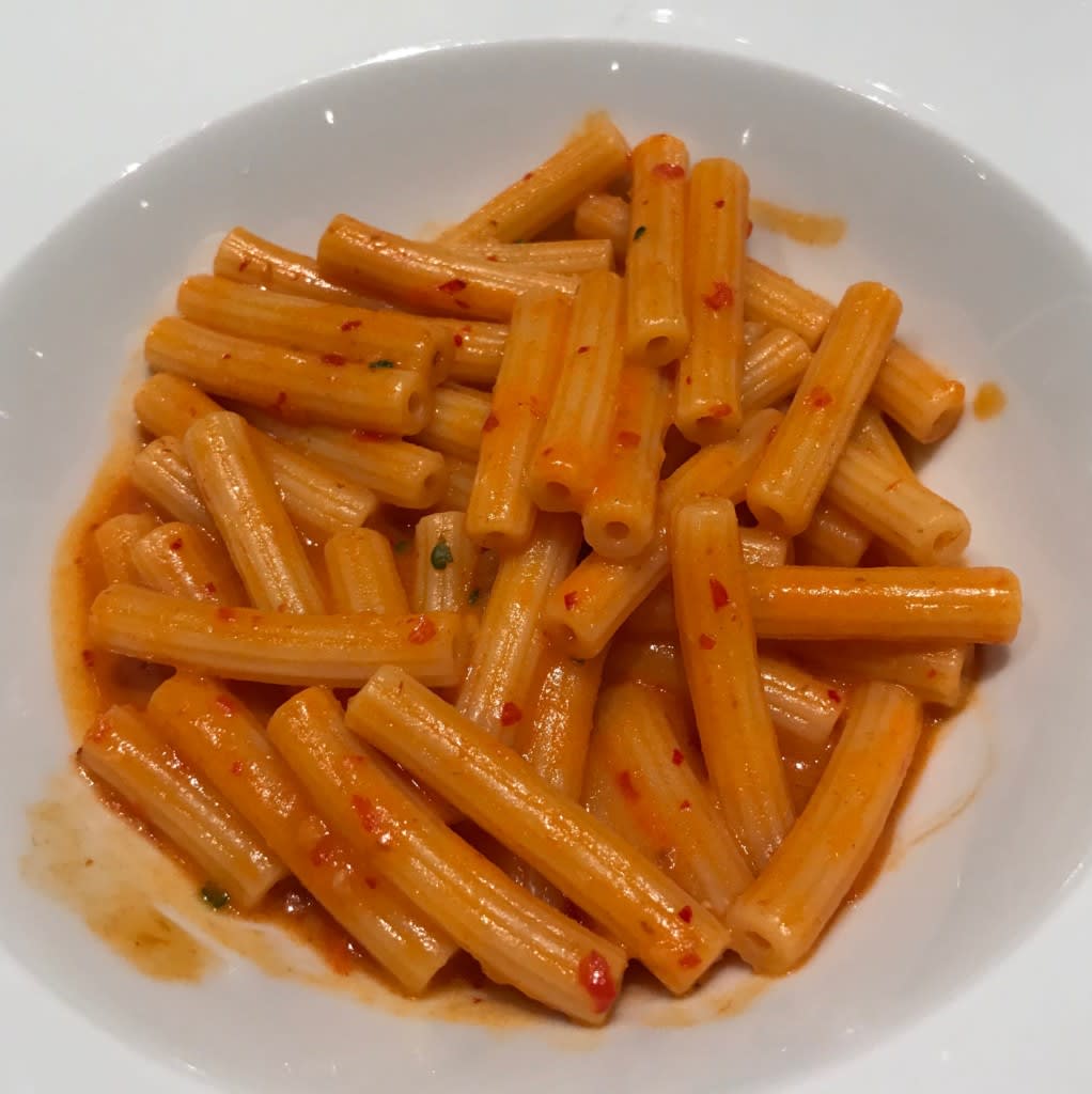 セダニーニショートパスタ・カラブリアンサラミペーストとミニトマト、クリーム和え。