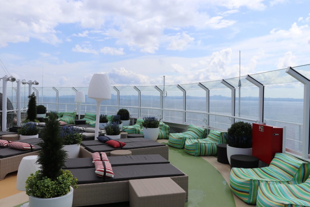 2019ゴールデンウィーク、コスタベネチアでのクルーズ最終日の朝はよく晴れていた。波も穏やかで船首のジャルディーノ・ベネチアーノでも風に煽られることなくのんびりできました。