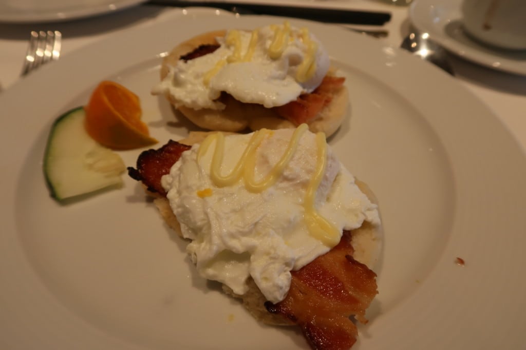 この日は他のパン、フルーツ、お料理のブッフェには手をつけず、エッグベネディクトを着席と同時にオーダーしました。待つこと…待つこと…待つこと…20~30分位?(笑)まぁ下船時間までに持ってきてくれるでしょ、的に待っていました。