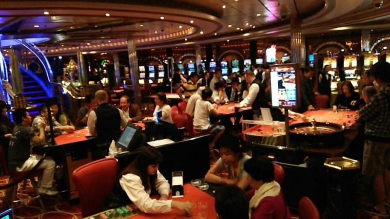 ■カジノルームです。15台前後のテーブルゲーム(ルーレット・ポーカー・ブラックジャックなど)と、120台程度だったでしょうか、スロットマシンがあります。