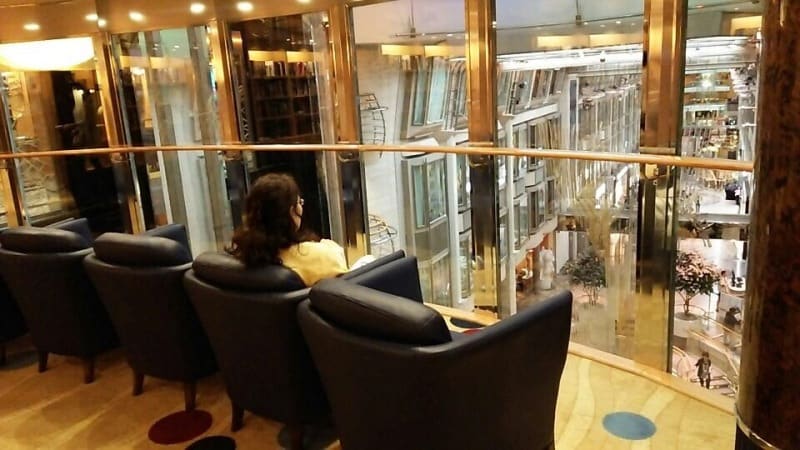 ■ここは図書室のソファーから、ショッピングアーケード『ロイヤルプロムナード』を臨める場所。