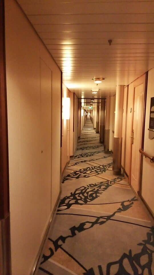 ですから、船尾の端っこの部屋の人が船首まで行って忘れ物に気付くと、往復500mを歩かねばなりません(笑