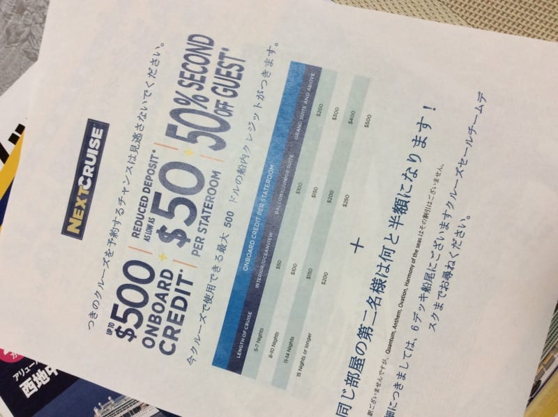 【船内で使える$500クレジットプレゼント】+【$50値引き】+【2人目基本料金は50%Off】が適応されますb