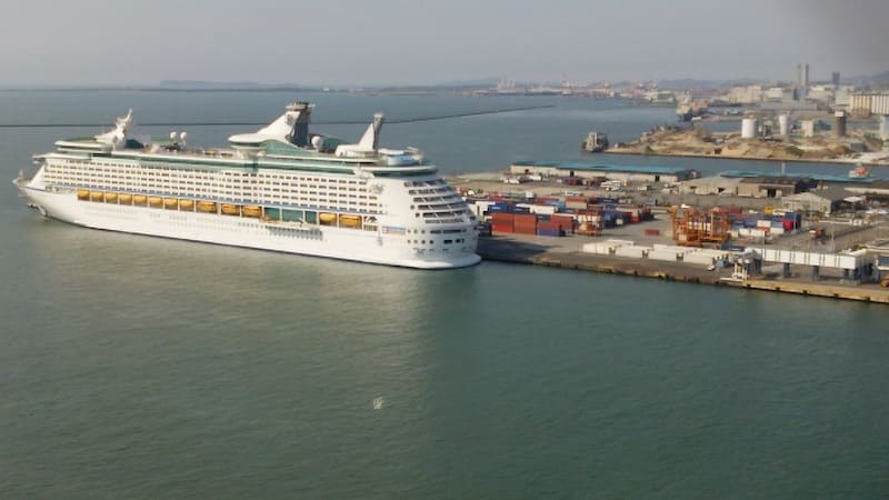 【博多港】に入港した時、下船して撮影したボイジャー。大きすぎて旅客港に入れず、貨物岸壁へ着岸しました。