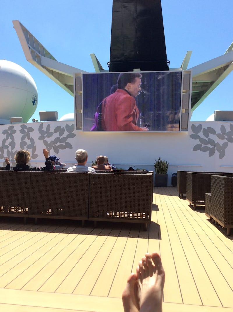 デッキ11の大型ビジョン。寝転んで鑑賞を楽しめます。