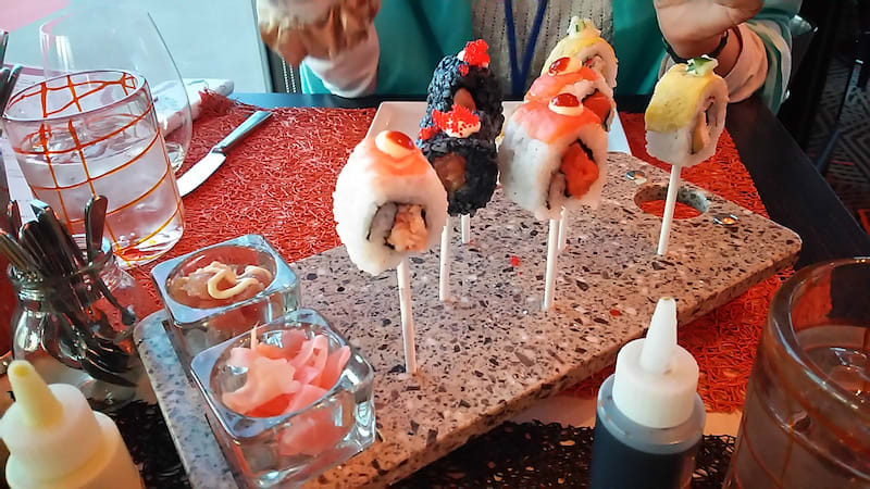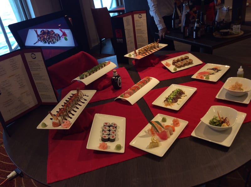 因みにクルーズ船内には、イタリア料理や寿司バーなど、有料レストランも幾つか備えており、無料ディナーとは少し指向を変えたい場合、そちらに出向く事もできます(どんなクルーズ船もほぼ同様です)。