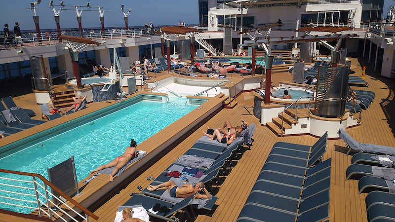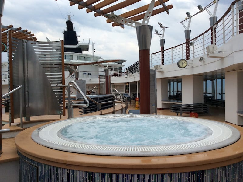 屋外デッキ11のオープンプール。左下の女性…ほんとオープン(爆