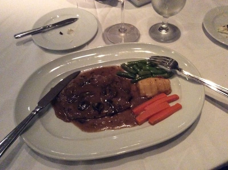 ↓そのボイジャーの時のディナー。お肉、パサパサで固ったーいの!ww
