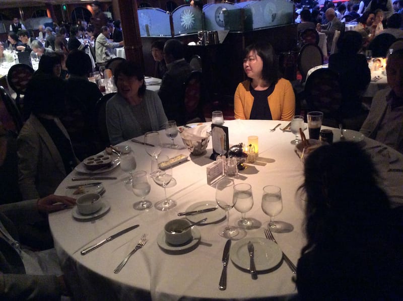 最初はよそよそしかったテーブルも、クルーズ後半ともなると、笑いの絶えないグループとなりました。
