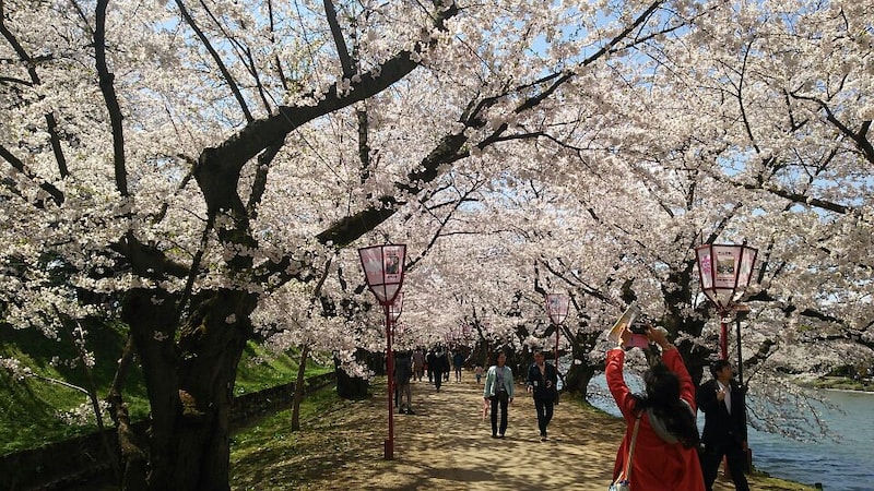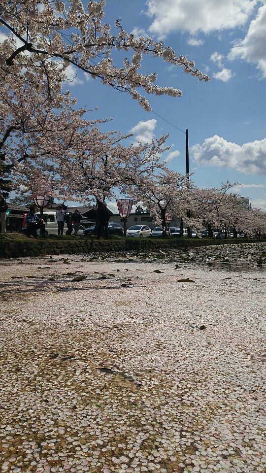 水面に散る桜と空に咲き誇る桜…日本で随一の情景です☆