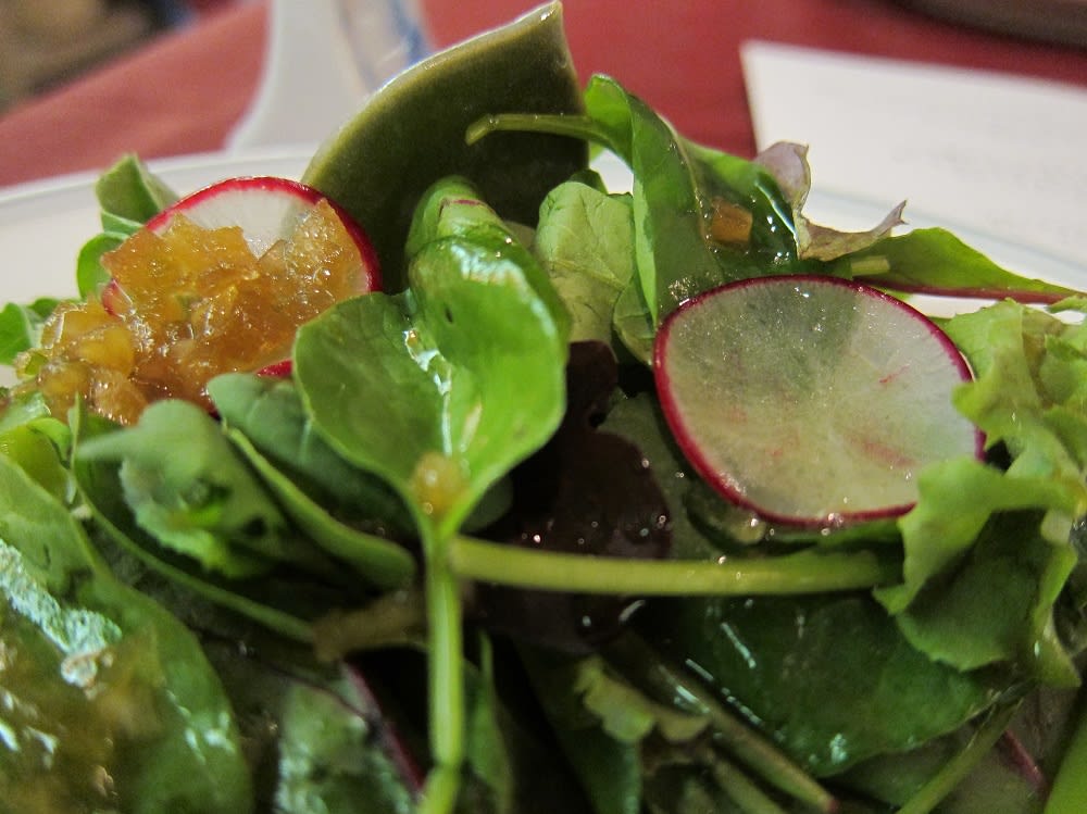 グリーンアスパラガスとグラパラリーフのサラダ 黒酢玉葱ドレッシング