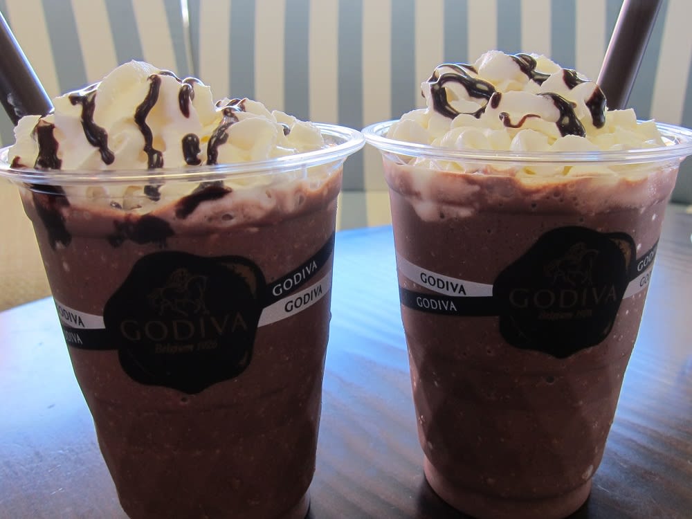 プールサイドのリドデッキで、評判のゴディバのチョコリキサーを飲んだり。