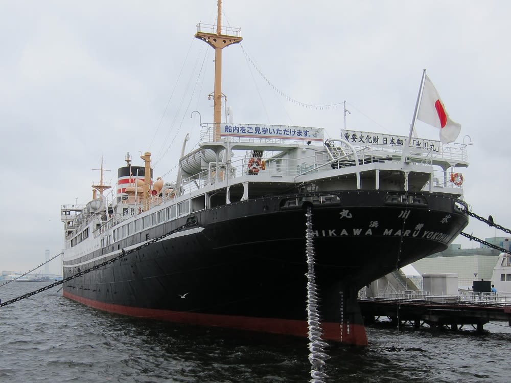 山下公園前に展示係留している氷川丸を見学しました。
